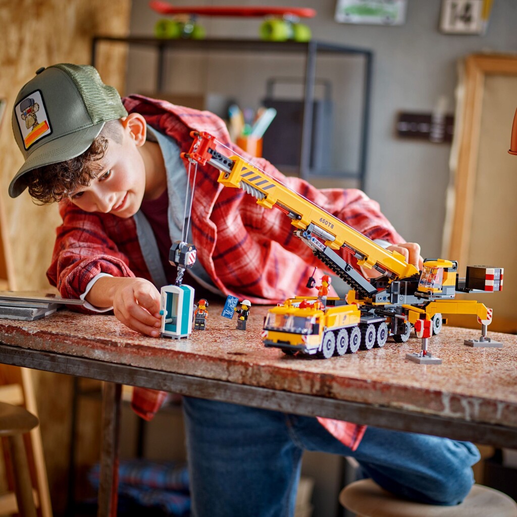 Laat kinderen enthousiast worden over coole bouwvoertuigen met deze LEGO City Gele mobiele bouwkraan (60409). Dit indrukwekkende model wordt geleverd met veel realistische functies. Kinderen kunnen de steunpoten uitklappen, de cabine draaien, de kraanarm uitschuiven en 360 graden draaien en de takel bedienen. Voeg de 4 minifiguren van bouwvakkers toe voor urenlange fantasierijke verhalen. Dit LEGO bouwvoertuig is inclusief stapsgewijze gedrukte bouwinstructies en 3D-instructies in de LEGO Builder app ? een digitale bouwpartner met intu?tieve zoom- en draaifuncties waarmee kinderen modellen van alle kanten kunnen bekijken tijdens het bouwen. LEGO City sets zijn creatieve cadeaus voor kinderen met coole voertuigen, realistische gebouwen en leuke personages. Kinderen kunnen deze LEGO City kraanset combineren met andere speelsets (apart verkrijgbaar) uit het LEGO City assortiment voor nog meer speelmogelijkheden. 1116-delig. Geschikt vanaf 9 jaar.