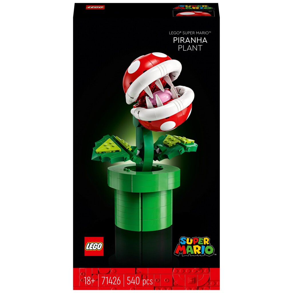 Neem de tijd om jezelf onder te dompelen in een ontspannende bouwuitdaging met deze verstelbare LEGO Super Mario Piranha Plant (71426) figuur. Maak de onderscheidende kenmerken van een Piranha Plant na en verstel zijn kop, bek, stengel en bladeren. Zet hem in de bouwbare buis en je hebt een leuke blikvanger voor thuis of op kantoor. (Let op: dit model heeft geen digitale speelfuncties.) Leuk cadeau voor fans Trakteer jezelf of geef dit LEGO Super Mario verzamelpersonage cadeau voor een verjaardag of de feestdagen aan volwassen Super Mario fans. Je vindt de bouwinstructies in de doos en in de LEGO Builder app, dus zelfs als je nog niet eerder met LEGO stenen gebouwd hebt kun je gerust genieten van elk moment van het creatieve proces. De set bevat ook 2 muntelementen. 540-delig. Geschikt vanaf 18 jaar.