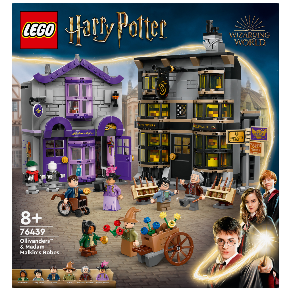 Open de winkels Olivanders en Madame Mallekins gewaden (76439) voor magische speelavonturen met deze LEGO Harry Potter Wegisweg bouwset voor kinderen. Dit tovenaarscadeau voor jongens, meisjes en Harry Potter fans bevat zeer gedetailleerde LEGO modellen van 2 bekende winkels aan de Wegisweg, elk boordevol speelse accessoires. De toverstokkenwinkel van Olivander heeft een uitneembare doos met de toverstok van Harry Potter, schappen, een ladder en in totaal 26 toverstokken. Madame Mallekins Gewaden voor alle Gelegenheden heeft paspoppen, hoeden en mantels. Deze speelset om te verzamelen bevat ook 6 LEGO minifiguren ? Harry Potter, Garrick Olivander, madame Mallekin, Padma Patil, een student en een heks met een kruiwagen met bloemen ? voor creatief speelplezier. Olivanders en Madame Mallekins kunnen met elkaar en met andere LEGO Harry Potter Wegisweg modellen (apart verkrijgbaar) worden verbonden om een betoverende winkelstraat te cre?ren. 744-delig. Geschikt vanaf 8 jaar.